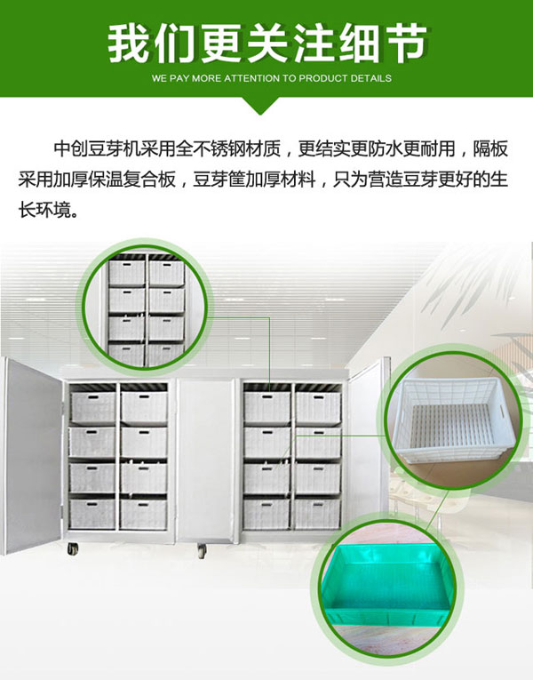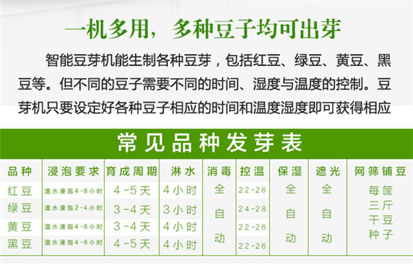 整體真正實(shí)現(xiàn)全自動(dòng)化,能提供豆芽生長(zhǎng)的適宜環(huán)境和條件。